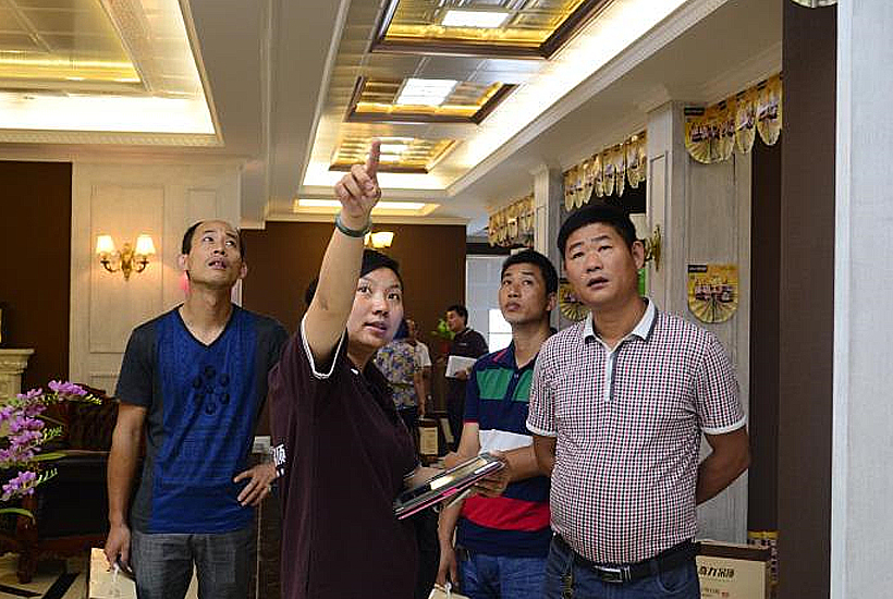 直供專車抵達(dá)奇力總部后,業(yè)主們就迫不及待得趕往公司展廳參觀。富麗堂皇的美式風(fēng)尚展廳,高貴奢華、精致典雅。一進(jìn)展廳,業(yè)主們的所有關(guān)注點(diǎn)便投射到產(chǎn)品上。他們紛紛掏出手機(jī),親手記錄下奇力的精美產(chǎn)品與展廳。
