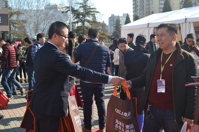 主動出擊,是奇力人深信不疑的準(zhǔn)則。縱然展廳內(nèi)已然人山人海,但奇力干將攜多位禮儀佳麗,不畏寒風(fēng),主動出擊,分發(fā)手提袋和各種宣傳資料。提前傳播奇力參展相關(guān)信息。