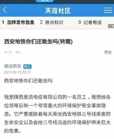 早前,一個(gè)自稱是某電纜公司員工的人發(fā)帖爆料,說(shuō)西安地鐵3號(hào)線的電纜供應(yīng)商提供了不合格的電纜。